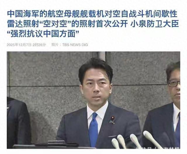 据观察者网12月7日报道,2025年12月7日凌晨2时,日本防务大臣小泉进次郎紧急召开记者会,措辞激烈地痛批中国歼-15舰载机于前一日两次用雷达照射日本F-15J战斗机,宣称这是“前所未有的危险挑衅”。 这场迅速发酵的海空对峙,绝非孤立的军事摩擦,而是交织着中日军事力量博弈、日本内政危机与美国战略转向的三重复杂变局,深刻折射出西太平洋地区安全秩序的重构态势与深层矛盾。
